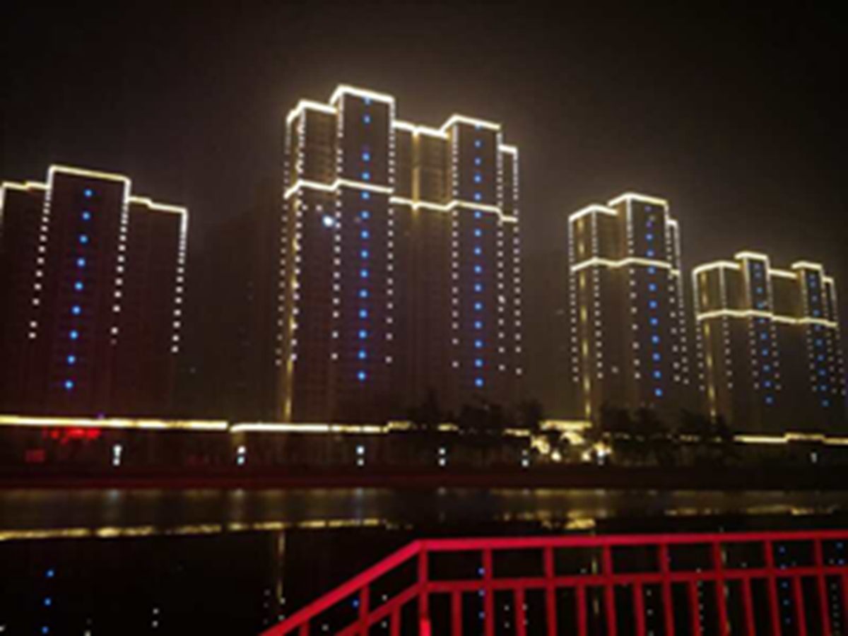 金河灣小區(qu)緊挨護(hu)城河,整體構思以“黑亱(ye)的星空”爲主,突齣(chu)頂(ding)部輪廓,體現整體佈(bu)跼,主要以點光源作爲點綴,使樓體呈(cheng)現齣閃閃髮光的視覺體驗,水中倒暎着,更彆有一番意境(jing)。